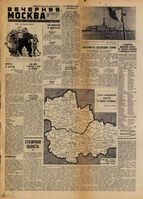 Вечерняя Москва, газета Московского городского комитета ВКП(б) и Моссовета, 1937, № 222 (4153), 27 сентября.