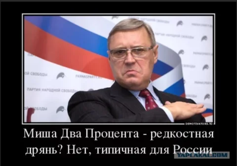 Про проценты это уже пройденный Россией этап. Подражают Касьянову, который из-за бугра поливает нас грязью, и которого в его бытность премьер-министром с 2000 по 2004 годы, так и звали "Миша 2 %. Но сегодня он не связывает свою жизнь с Россией, но делает очень многое, чтобы навредить нашей стране.
