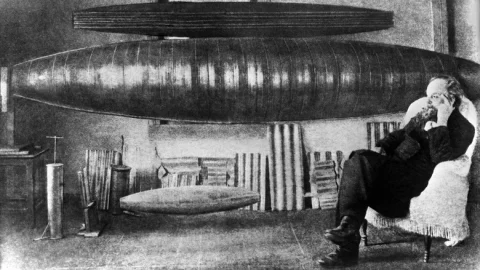 Цельнометаллический дирижабль. Честно говоря, название уже звучит бредово. Полностью железная махина, наполненная газом, должна была, по утверждению Циолковского, обладать вполне приличными ходовыми свойствами. На деле же проект не был теоретически обоснован и больше представлял собой научно-фантастический замысел, совершенно нереализуемый на практике. Кто-то воплотил его в жизнь? Нет. Ни при жизни Циолковского, ни после его смерти.