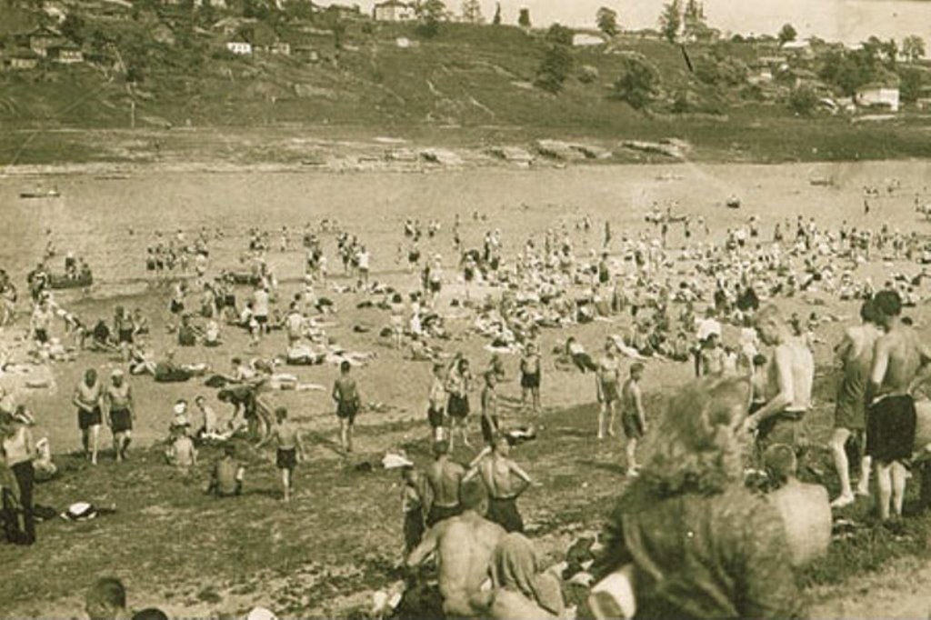 Коровы отдыхали в прохладной Оке , и за это место было в народе прозвано "коровьим пляжем".