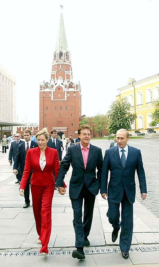 Сразу по прибытию в Москву сэр Пол встретился с президентом Владимиром Путиным. После чего глава государства даже устроил артисту и его тогдашней супруге Хизер Миллс, экскурсию по Кремлю.