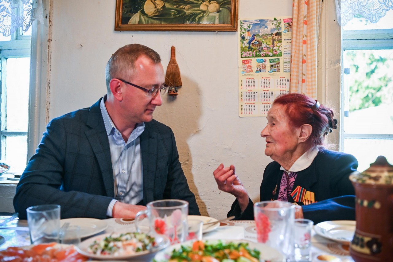 Помню когда он её поздравлял со 100-летием, она также жила в этой бревенчатой избушке с этим же торчащим из бревен мхом.