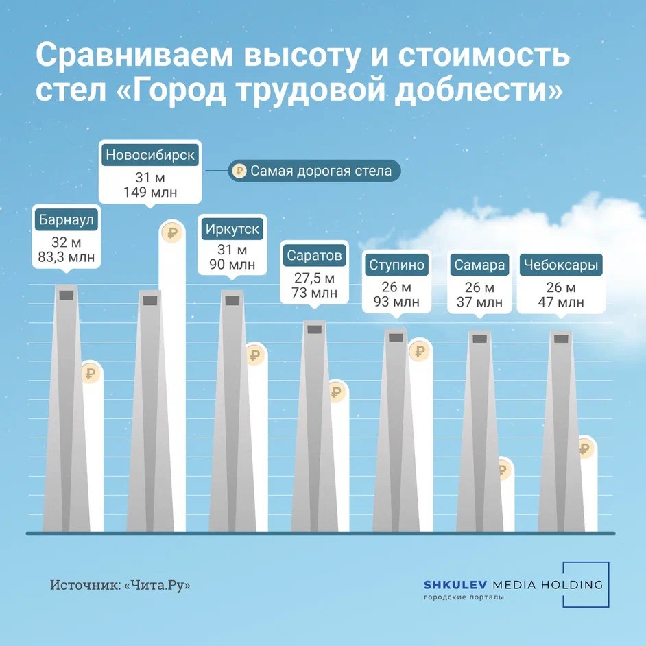 Да ещё писали, что мол во многих российских городах, стелы ещё выше и дороже.