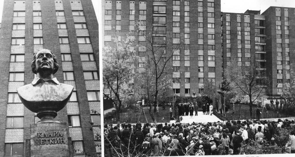 А в октябре 1987 года около общежития КГПУ, с большой помпой был открыт ещё и бронзовый бюст Клары Цеткин скульптора А.Н. Бурганова.