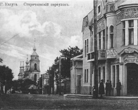 Великолепный каменный особняк купца-миллионера Николая Васильевича Теренина, с фасадом обработанным серым портландцементом с гранитной крошкой, и богато декорированы лепниной в стиле эпохи Ренессанса, находится на пересечении улицы Воскресенской и переулка Старичкова. Строительством, которое началось в 1904 году, руководили калужские архитекторы Николай Новоуспенский и Hиколай Шевяков. Возводить здание завершили к началу Первой мировой войны. В краеведческой литературе есть предположение, что Теренин был знаком со знаменитым архитектором Федором Шехтелем, и проект дома заказали именно у него.