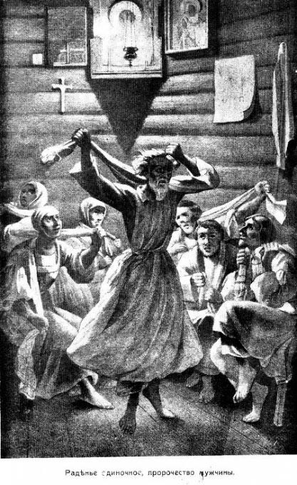На таких радениях все распевали православные песни, ходили по кругу особым образом, и потом дело доходило до плясок, которым радеющие предавались до одури, чтобы ослабить "злую лепость".