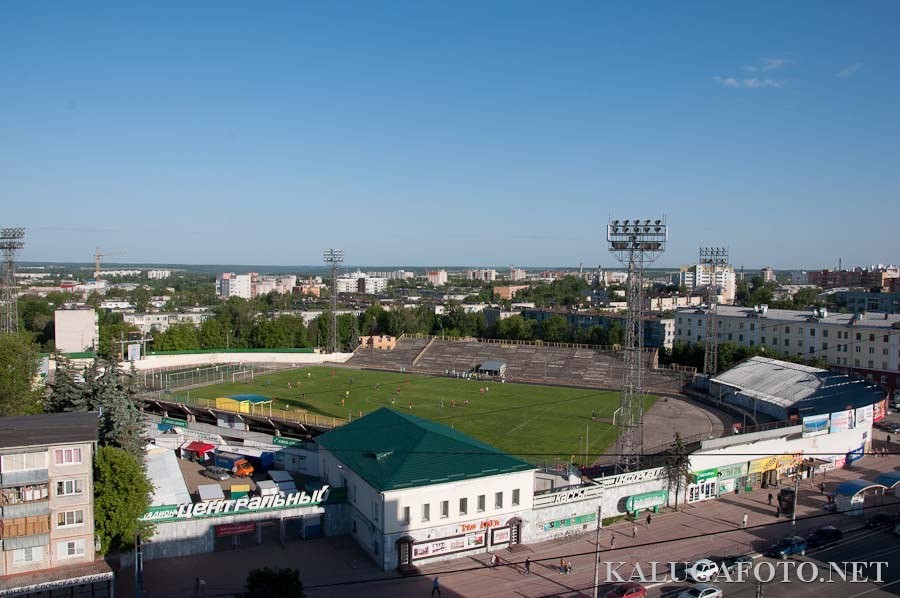 Затем стадион решили построить в центральной части Калуги, напротив тогдашнего Народного дома, где сейчас стоит Калужская филармония, там был пустырь и улица Пески, позже переименованная в проспект Баррикад.