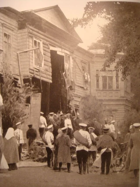 Во время беспорядков на Театральной площади Столыпин, сойдя с парохода, тут же отправился к месту мятежа, чтобы разобраться. Он шел пешком, по мере приближения к площади встречался с группами людей, настроенных крайне недоброжелательно. Но это не смущало Столыпина: он шел спокойно и невозмутимо к месту проведения митинга. Вдруг из окна третьего этажа кто-то бросил бомбу, которая упала к ногам Столыпина. Бомба взорвалась, несколько человек рядом с Петром Аркадьевичем погибли, а сам он не пострадал. И произнес абсолютно спокойно толпе: «Разойдитесь по домам и надейтесь на власть, вас оберегающую». Его хладнокровие и спокойствие возымели свое действие: толпа начала успокаиваться и редеть.