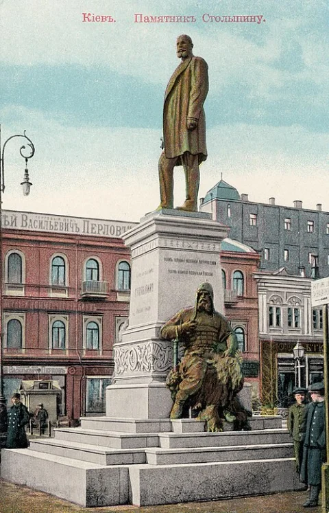 7 сентября некоторые члены Государственной думы и гласные местного земства предложили поставитьСтолыпину памятник в Киеве. Собирать средства решили пожертвованиями, которые поступали так быстро, что буквально через три дня в одном Киеве была собрана сумма, которая могла покрыть расходы на памятник. Через год, 6 сентября 1912 года на площади возле Городской думы, на Крещатике, в торжественной обстановке, был открыт памятник. Столыпин был изображён говорящим речь, на камне были высечены сказанные им слова: «Вам нужны великие потрясения — нам нужна Великая Россия», а на передней стороне пьедестала памятника была надпись: «Петру Аркадьевичу Столыпину — русские люди».