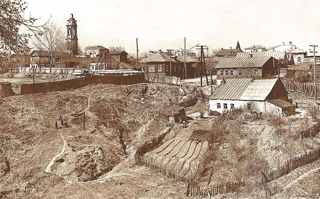 Овраг стали засыпать грунтом, мусором и навозом в конце XVIII века, и к середине XIX века его засыпали аж до современной улицы Достоевского, причём ручей был взят в трубу, а на пересечении с улицей была сделана небольшая плотина, которая называлась Успенской.
