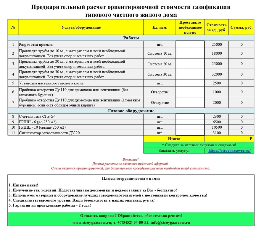 Сколько будет ИТОГО провести газ в ваш дом посчитайте сами.