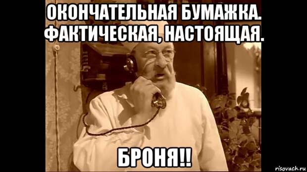 Ну что ж, можно комментировать и призывать, когда у тебя такая бумажка-железная броня от фронта.