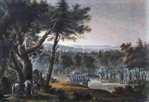 Покинув сожжённую Москву, войска Наполеона 23 октября вступили в Боровск. Верные своим «рыцарским правилам войны», французы и их союзники сожгли и разорили 26 каменных и 848 деревянных строений. Был сильно повреждён, и знаменитый, Пафнутьев-Боровский монастырь. В это время Наполеон был уверен в успехе своего плана: отступить к Смоленску через Калугу, по местности, почти не затронутой военными действиями. Знаменитый полководец не догадывался, что его замыслы рухнули ещё накануне. В конце сентября 1812 года Михаил Кутузов поручил капитану Александру Сеславину возглавить партизанский отряд. В распоряжении Сеславина оказались около двухсот пятидесяти казаков, и эскадрон Сумского гусарского полка.