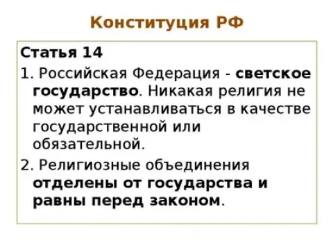 В России Церковь отделена от государства, и это закреплено в Конституции.