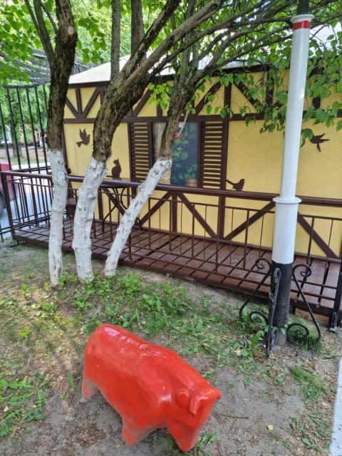 После этого в июне того же 2023 года в парке Драмтеатра он (интересно с чьего разрешения), он построил "домик" в немецком стиле, объяснив, что в нём где будут храниться газонокосилки и снегоуборочная техника.