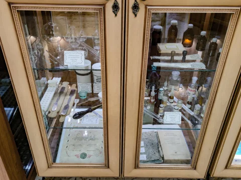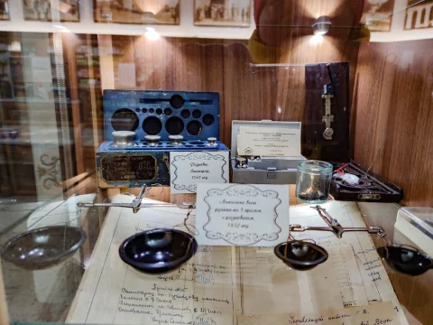 Недавно в аптеке открылся мини-музей, в котором можно увидеть медикаменты прошлых столетий, старинные весы, колбы. Мини-музей – это небольшой шкаф, который вмещает в себя большую историю с интересными фактами. К примеру, в старом журнале есть заявление времен Второй Мировой. В нем пишется: «Прошу дать мне отпуск с 14-го по 18-е июля по случаю приезда моего мужа с фронта». Есть в музее и декоративно оформленные ярлыки лекарства 1917-го года. Пачка нераспечатанного раствора аммиака времен СССР, и уникальный нож для снятия пробки конца 19-го века.