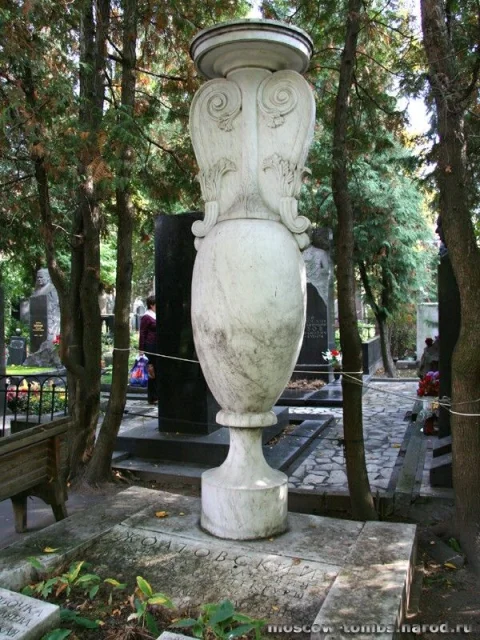 Иван Владиславович Жолтовский умер 16 июля 1959 года в Москве в возрасте 91 года, и был похоронен на Новодевичьем кладбище. Этот памятник Иван Владиславович проектировал сам, но не для себя, а на могилу певицы А. Неждановой, (+1950), но не успел этого осуществить.