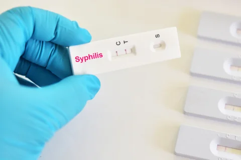 Сдать нужные анализы можно анонимно, а пройти лечение от этой болезни, как по ОМС, так и в частных клиниках, в последних также можно вылечиться анонимно. Для любого пациента «Сифилис» звучит устрашающе, однако впадать в панику не надо. В современной медицине лечение сифилиса достигло значительных результатов. Главное в этом случае при первых признаках вовремя обратиться к врачу. Определить, сколько времени лечится сифилис, под силу только лечащему врачу. Продолжительность терапии может зависеть от возрастных особенностей, течения заболевания, наличия других болезней и так далее. Первичный сифилис лечится около 14 дней. Применяется пенициллиновая терапия. Весь курс прописывается специалистом в зависимости от индивидуальных особенностей пациента. Если больной обратится вовремя, то первичный сифилис лечится полностью за 3 инъекции. Вторичный сифилис лечится дольше, и характерными признаками вторичного сифилиса являются папулы, пятна, сыпь. Затрагиваются не только области половых органов, но и остальные части тела. Для лечения применяются антибиотики пенициллиновой группы. Препарат вводят большими дозами, а начиная с третьего дня терапии, лекарство сочетают с препаратами висмута. Вторичный сифилис лечится от 14 до 45 дней. В стационаре в течение первых 2 недель пациенту 8 раз в день вводится пенициллин. Дальнейшее лечение носит амбулаторный характер с применением бициллина, который применяют 2 раза в неделю.