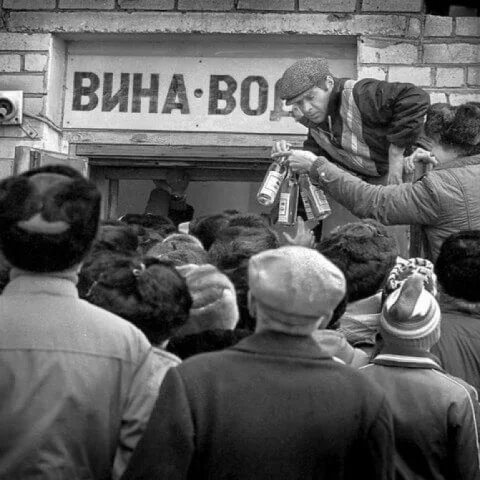 Магазины, продававшие спиртное, могли делать это лишь с 14:00 до 19:00. Люди с ночи занимали очереди в винные магазины, и эти очереди растягивались на сотни метров. В этих очередях, несмотря на присутствие милиции частенько происходили драки. А иногда люди лезли в заветные двери буквально по головам.