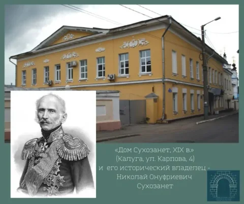Дом привела в порядок Евдокия Сухозанет (в девичестве Яшвиль), 90-летняя вдова известного военного министра России, у которой в Калуге был ещё один дом. В 1868 году этот дом приобрел военный министр Николай Онуфриевич Сухозанет, известный тем, что 14 декабря 1825 года, на Сенатской площади он выступил одним из переговорщиков с декабристами. Когда же переговоры не удались, именно его пушки рассеяли мятежных декабристов. В 1824 году он женился на княжне Екатерине Белосельской-Белозёрской, и в 1870 году, после отставки, последние годы жизни Николай Онуфриевич провёл в Калуге.