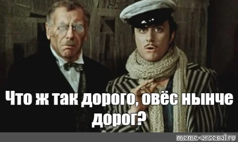 – Это почему ж так много? Овес нынче дорог? " в Золотом теленке в сцене написания портрета товарища Плотского: "— А овес-то нынче, — сказал Мухин певуче, — не укупишь. Он дорог, овес-то! "