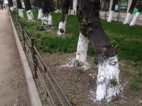 Деревья точечно побелили...