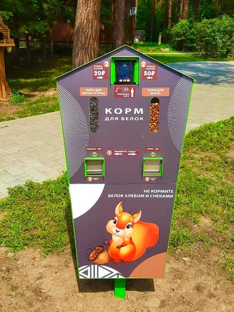 Это что. Вот в Новосибирске в сосновом бору установили специальный аппарат с правильным питанием для белок и птиц...