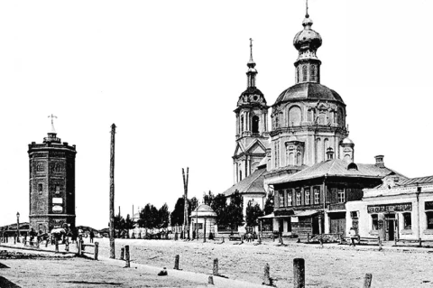 Одновременно приступили к строительству водонапорной башни в самом высоком месте города на площади Новый торг (ныне Театральная площадь). Наземная часть башни поднималась над мостовой на 25 метров, а внутри была установлена металлическая емкость для воды, вмещавшая в себя 14 тысяч ведер. В 1903 году емкость была заменена на два резервуара, вместимостью 21 тысяча и 4 тысячи ведер.
