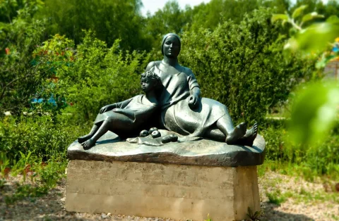Памятники есть в селе Воскресенском (в Ленинградской области), во Пскове, в селе Большое Болдино (в Нижегородской области), и на всех она изображена вместе с любимым воспитанником.