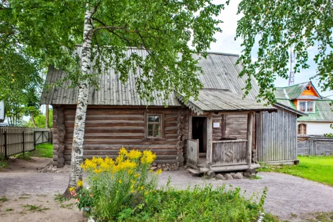 В Кобрино есть «Домик няни Пушкина» «Домик няни Пушкина» — это не ее настоящее жилье. На самом деле здесь просто базируется музей, посвященный крестьянскому быту, но есть сумка-торба, которую изготовила сама Арина Родионовна. Основная экспозиция — дело рук местных жителей. Подлинный же дом женщины до наших дней не просуществовал.