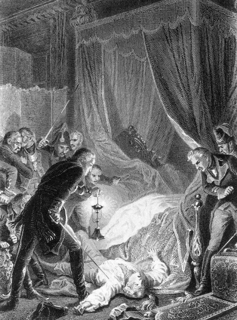 Среди противников действующего императора особенно выделялись генерал-губернатор Санкт-Петербурга Петр Пален, вице-канцлер Никита Панин, а также последний фаворит Екатерины II Платон Зубов с двумя братьями, Валерианом и Николаем. За два года число людей, вовлеченных в заговор, выросло до трех сотен человек, причем недоброжелатели Павла находились не только в столице. Наступил роковой вечер 11 марта 1801 года. В девять часов император ужинал в Михайловском замке вместе со старшими сыновьями и дочерью, Михаилом Илларионовичем Кутузовым, женой главного заговорщика статс-дамой Пален, и другими знатными особами. После трапезы Павел Петрович беседовал с Кутузовым, а затем взглянул на свое отражение и воскликнул: «Какое смешное зеркало! Я вижу себя в нем с шеей на сторону».