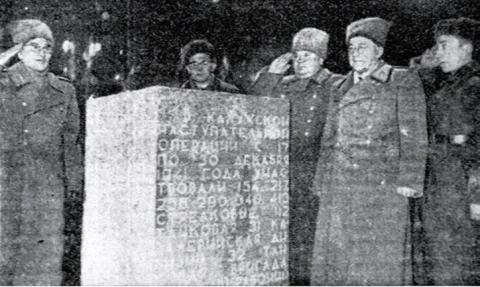 И наконец по теме. Как известно Калугу от немецко-фашистских захватчиков 30 декабря 1941 года освободила 50-я армия, и памятный камень на месте будущего монумента воинам 258-й стрелковой дивизии, заложили 24 декабря 1966 года, на Правом берегу реки Оки. Его заложили: бывший командир дивизии генерал-лейтенант запаса Дмитрий Кузьмич Мальков, и ветеран войны председатель Калужского горисполкома Геннадий Чиликин.