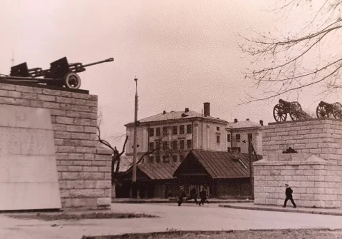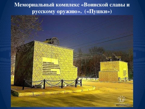Ещё один воинский мемориал, открылся неподалёку на улице Московской 7 мая 1966 года в Калуге. Это всем известные "Пушки". Для его установки были использованы каменные опоры бывшей железной дороги, калужской петли». Макеты пушек 1812 года были привезены в Калугу с закончившихся тогда съёмок фильма «Война и мир» режиссёра Сергея Бондарчука, а 76-мм орудия ЗИС-3, были предоставлены Министерством обороны.