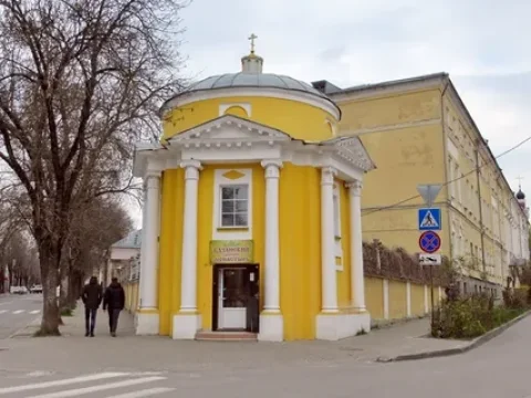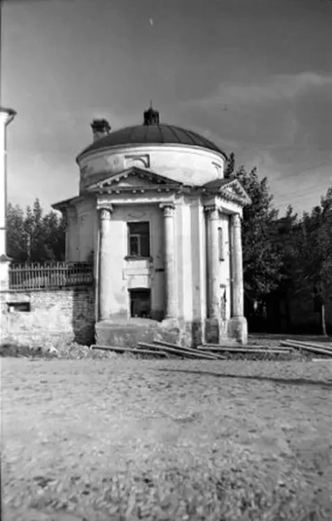 Сегодня здесь расположены часовня иконы Божией Матери «Казанская» и иконная лавка. Ротонды проектировал их известный калужский архитектор Иван Ясныгин, и позже, в 1840 году, купцы за 72 тысячи рублей ассигнациями, продали свою усадьбу Калужскому духовному училищу, которое сдало ротонду «на стрелке» в аренду городской жандармерии. Полицейские прорубили в здании окна и двери и посадили там городового.