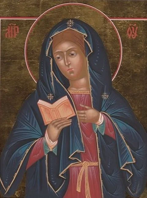 На ней Богородица предстаёт без Младенца, с книгой в руках.