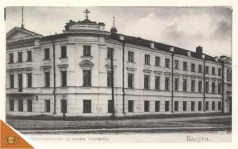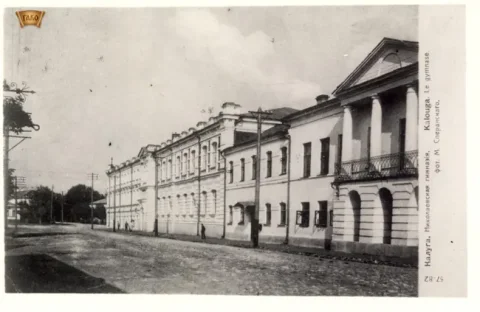 Начало гимназии было положено трудами первого директора гимназии Онисима Григорьевича Потресова, и учителя истории Григория Кирилловича Зельницкого. С их именами связано создание первой в Калуге типографии, издание журнала "Урания", и начало систематических краеведческих изысканий. В разное время директорами и попечителями ее назначались авторитетные люди, чьи имена были широко известны: Семен Унковский - статский советник, флотоводец, губернский предводитель дворянства; Семен Яновский – мореплаватель, Сергей Щербаков - последний директор гимназии, известный астроном и педагог.