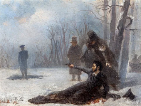 27 января (по старому стилю) 1837 года около пяти часов вечера во время поединка на Чёрной речке Дантес выстрелил в Пушкина первым и ранил его в живот, но тот нашёл в себе силы ответить и попал сопернику в руку. Француз получил лёгкое ранение, а Пушкин не мог подняться и истекал кровью. Врача на дуэли не было, и Пушкина целый час везли домой в полусидячем положении - сперва на санях, а потом в карете.