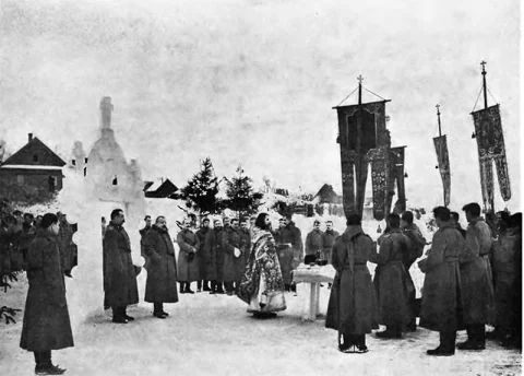 Проводы в армию в губернских и уездных центрах сопровождались шествиями и митингами, вначале стихийными, а затем и организованными. Люди несли флаги, портреты императора. Участниками шествий многократно исполнялся гимн «Боже, царя храни!», играл оркестр.