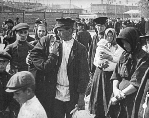 В 1914 году миллионы мужчин услышали впервые это слово — мобилизация. В центре Петербурга в жаркие июльские дни могло показаться, что воодушевлённая нация готова в едином порыве, с радостью исполнить свой долг перед императором и Родиной. На центральных улицах и площадях гремели манифестации с царскими портретами, крестами и патриотическими транспарантами: «Победа России и славянству!».