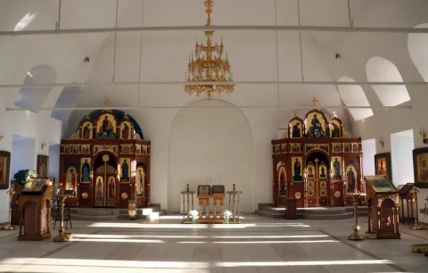 Да и внутри более чем скромно, и больше похоже на небольшие простенькие двурядные иконостасы, с пустыми не расписанными стенами, как где-нибудь в глубинке.