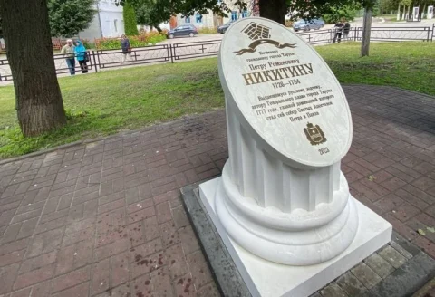 12 июля 2023 в Тарусе была установлена стела, на срезе которой размещена каменная мемориальная доска, на которой указано, что Петр Никитин был автором генерального плана Тарусы в 1777 году....