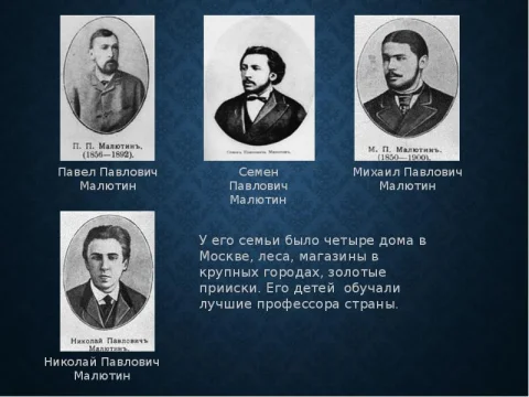 Распорядился, и на следующий год скончался на традиционной Нижегородской ярмарке от холеры, а банк был переименован в «Общественный братьев Михаила и Павла Малютиных банк».