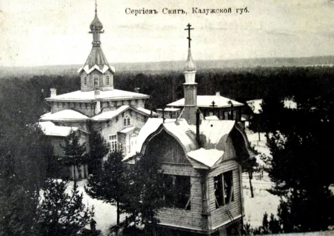 История Сергиева скита началась 4 февраля 1906 года, когда на заседании Калужского отдела Императорского православного Палестинского Обществаа местный губернатор А. Офросимов высказал предложение об увековечивании памяти первого председателя этого общества Великого князя Сергея Александровича Романова, который занимал ответственные государственные и военные посты, в том числе был Московским генерал-губернатором в 1891-1905 году, а также главнокомандующим войсками Московского военного округа.
