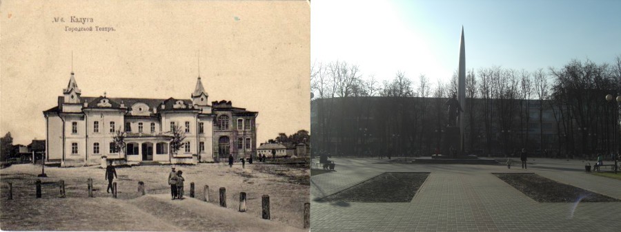 Калужский театр. Сейчас на этом месте стоит Циолковский.