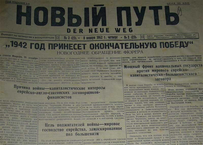 Городская типография также использовалось захватчиками: с 28 ноября по 20 декабря 1941 года издавалась еженедельная оккупационная газета «Новый Путь», под девизом «Против большевизма! За свободу и хлеб!».