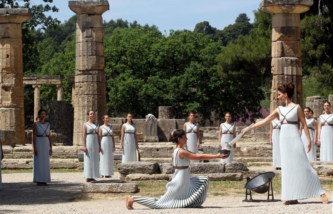 За полгода до игр на горе Олимп зажигают огонь, и зажигает его некая "верховная жрица" богини Геры в языческом храме бога Аполлона.