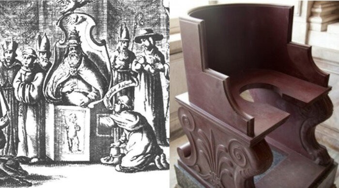 К тому же считается, что именно после этой истории каждый новоизбранный Папа, начал проходить процедуру определения пола с помощью специального прорезного стула.