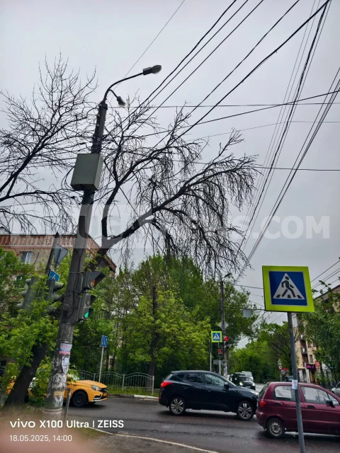 Да таких по Калуге десятки,вот фотографировал на Маршала Жукова,прям на переходе висит ветка огромная,если упадет то машины,и пешеходов накроет!Оно с 2016 год в таком состояние уже,почти 10 лет прошло,и никто не шевелится пилить.Рядом еще одно над троллейбусной линией висит ближе к Бристолю,тоже может упасть,всю Жукова перекроет.За то около Рио попилии зеленая деревья,пусть не много поеденные насекомыми